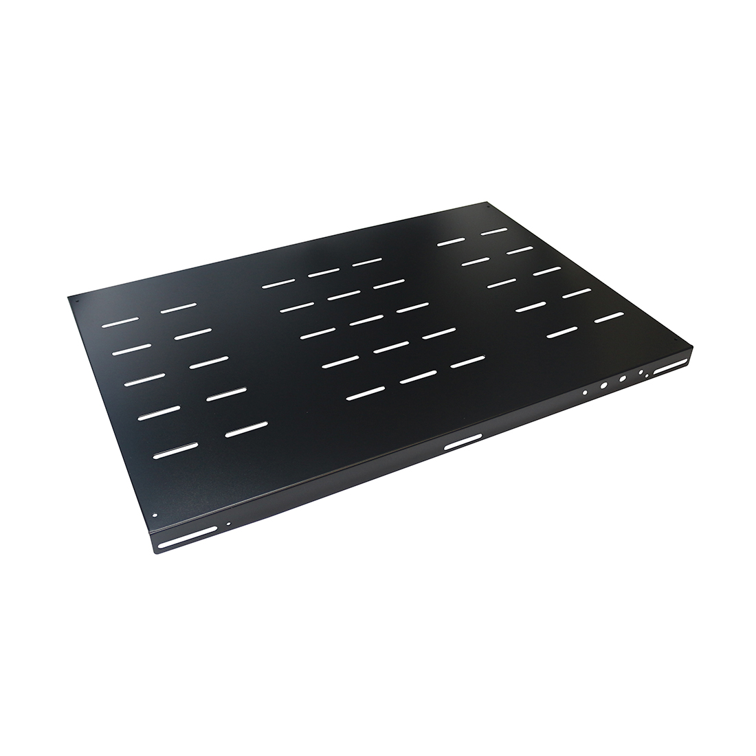 Полка фиксированная с ушками для крепления в шкаф. Способна нести статическую нагрузку 90 кг. Изготовлена по высокоточной технологии из высококачественного стального листа холодной прокатки. Имеет качественное порошковое покрытие с предварительным фосфатированием поверхности. Полка перфорирована для свободного прохождения охлаждающего воздуха. Предназначенна для напольных шкафов VE серии.