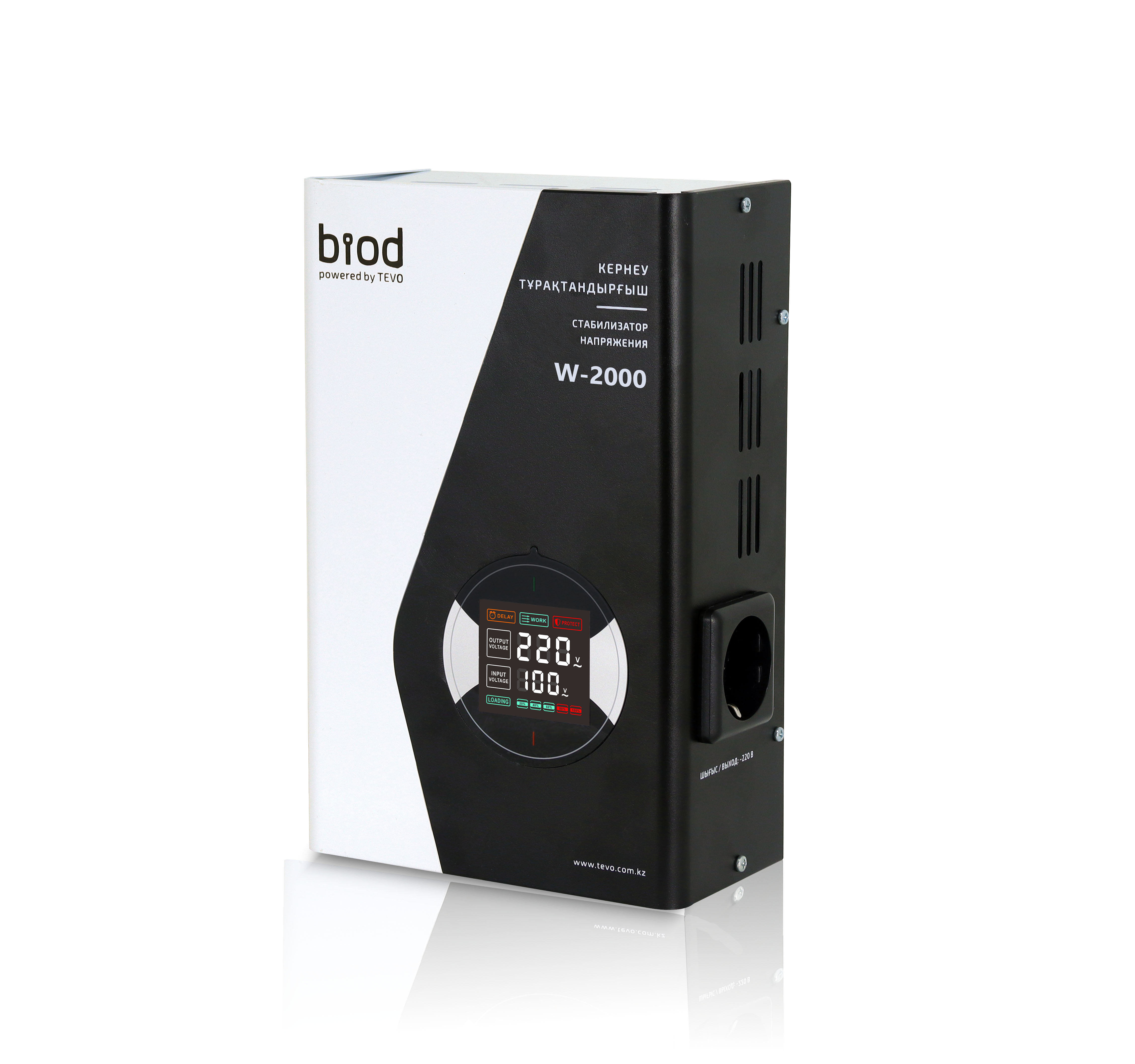 Стабилизатор напряжения Biod Pro W-2000 – надёжная защита газовых котлов и бытовой техники от скачков и перепадов напряжения. Благодаря мощности 2000 ВА он подходит для котлов с более высокой нагрузкой, а также телевизоров, холодильников, роутеров и другой техники. Настенное исполнение экономит пространство, а LED-дисплей на казахском и русском языках обеспечивает удобный контроль.
